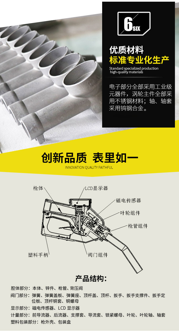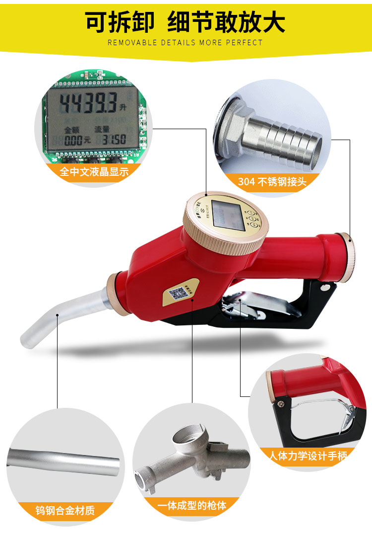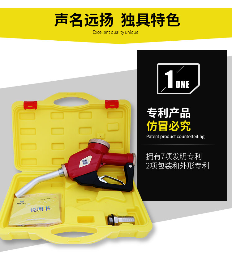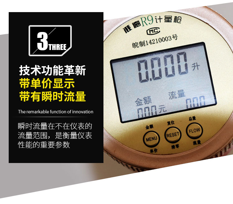 該產(chǎn)品可以根據(jù)需要,隨時(shí)調(diào)整實(shí)際出油量,實(shí)現(xiàn)少給油或多給油功能,具體調(diào)整方法聯(lián)系在線客服人員。|1、擁有7項(xiàng)發(fā)明專利,2項(xiàng)包裝和外形專利2、電子液晶顯示,精度等級為1.0級,為目前市場同類產(chǎn)品實(shí)際精度等級為比較高的3、全部采用同質(zhì)檢測,逐一鑒定。保證每一種計(jì)量槍的穩(wěn)定性和精準(zhǔn)度4、帶有瞬時(shí)流量,瞬時(shí)流量在不在